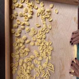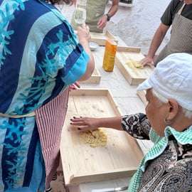 Aprende a preparar orecchiette caseras con una abuela local, que te guiará paso a paso en la preparación de la masa y la técnica tradicional para darle forma.
